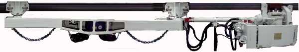 气动单轨吊一般与5T气动起吊部配合使用,行走时,人员手持操作控制器跟随机车,实现机车的各项动作。