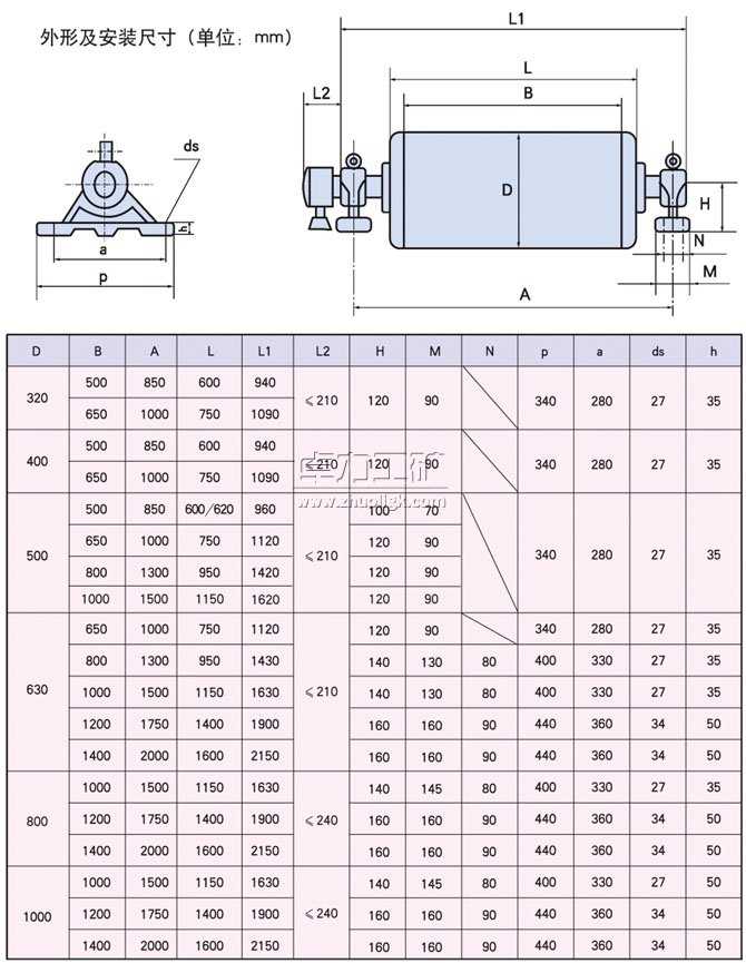 5. 电动滚筒的额定是连续工作制S1为基准的连续定额,允许满压起动,但电动滚筒在负荷启动时功率必须提高一档。
