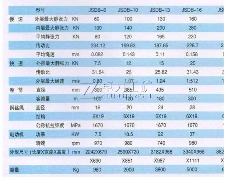 4. 传动效率高、工作效率高、容绳量大、节能。