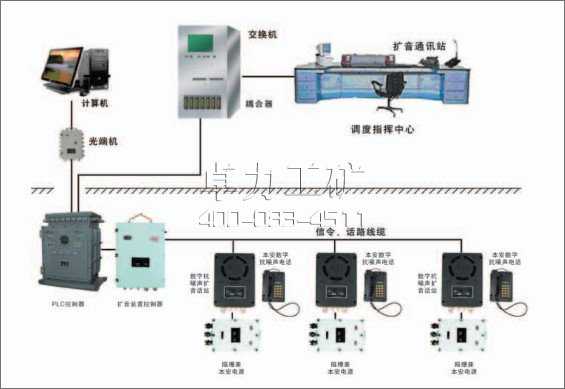 3、通过调度台直接联系调度人员通过调度台对井下目标进行呼叫,对于单个话机进行呼叫时,拿起话机手柄即可通话;通话完毕后,将电话挂机。对于话站和话机共同连接时,地面呼叫赶时髦下话站成功时,话站的扩音器自动打开,当目标人员听到话站内的播音时,可以拿起相应的话站自动打开进行播音,当目标人员提起话机时其它话站打主意器自动关闭。